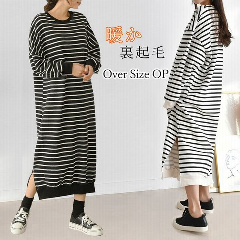 ゆったりロング ボーダーワンピース チュニックワンピ 暖かい裏起毛 綿100 スウェット ボーダー ルームウェア マキシワンピース レディース 長袖 Free 韓国製 通販 Lineポイント最大0 5 Get Lineショッピング