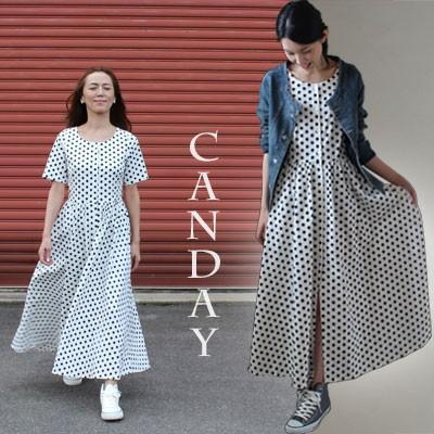 ノスタルジ ドットワンピ 3サイズ 春夏 カジュアル もっちりサラリな布 ワンピース ロング aライン マキシ コットン 水玉 ドット ホワイト On 0135 Canday 通販 Yahoo ショッピング